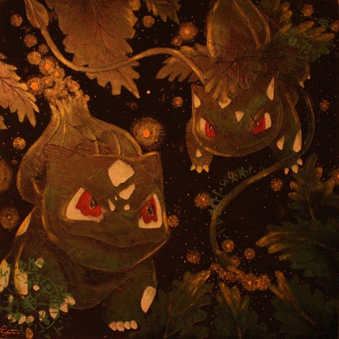 Une version ombre et lumière en acrylique de l'univers Pokémon.